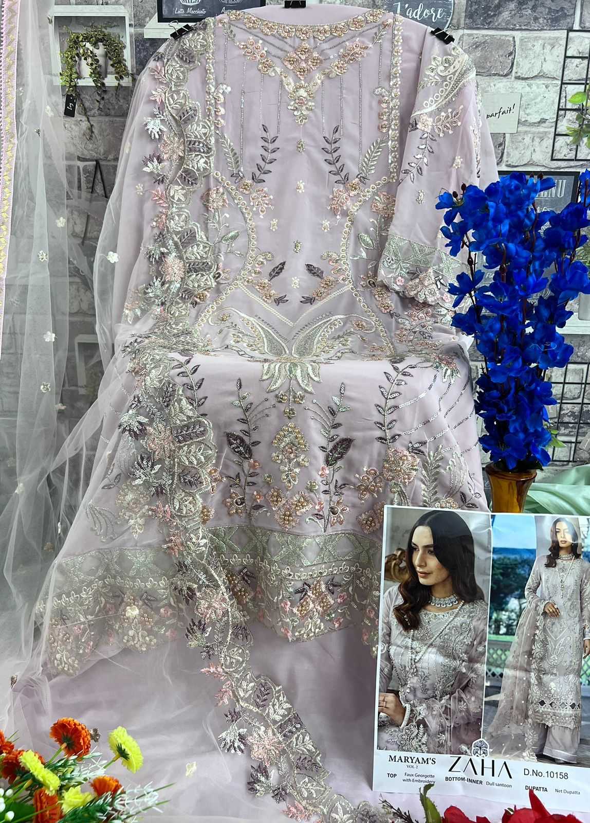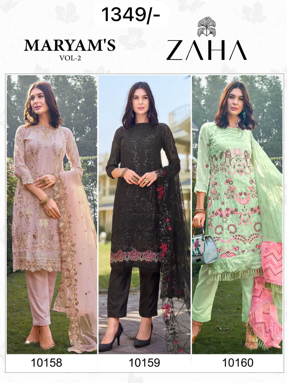 zaha maryam vol 2 10158-10160 pakistani embroidery work dress material