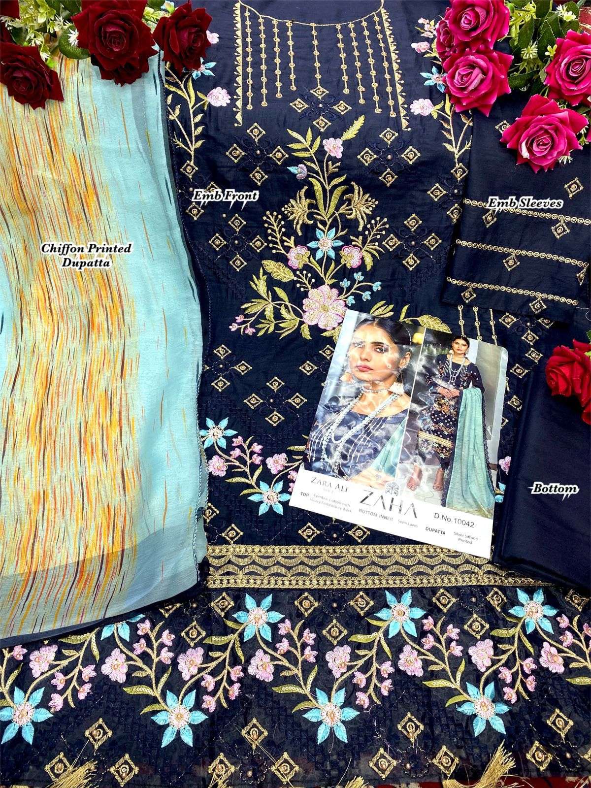 Dear ZAHA 👗 Top : PURE CAMBRIC COTTON WITH HEAVY EMBROIDERY WITH MOTHI 👖Bottom :PURE PC COTTON 🏳️🌈Dupatta : PURE SILVER CHIFFON PRINTED