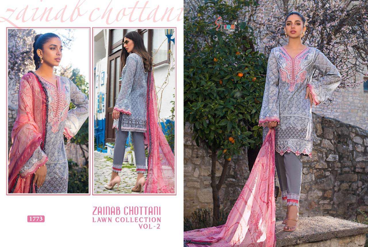 ZAINAB CHOTTANI LAWN COLLECTION VOL-02 TOP PURE LAWN COTTON PRINT WITH EXCLUSIVE EMBRODERY WORK & GPO SHIFLY LESS BOTTOM SEMILAWNÂ DUPPTA SILVER SIFFON & COTTON MALMALÂ RATE 751+ GST SIFFON Â Â Â Â Â 799+ COTTONÂ SHREE FABS SURAT |