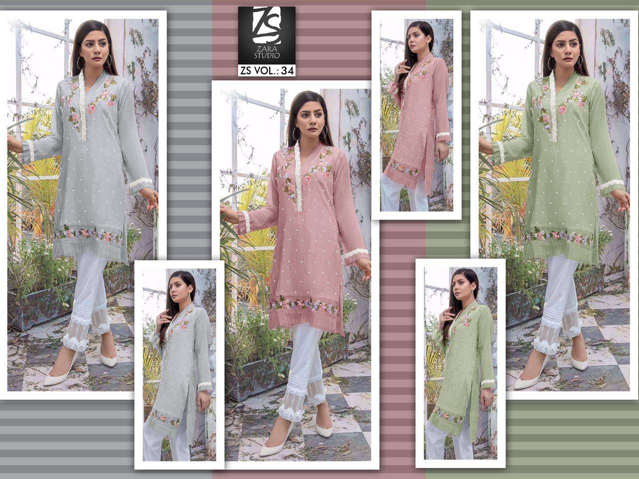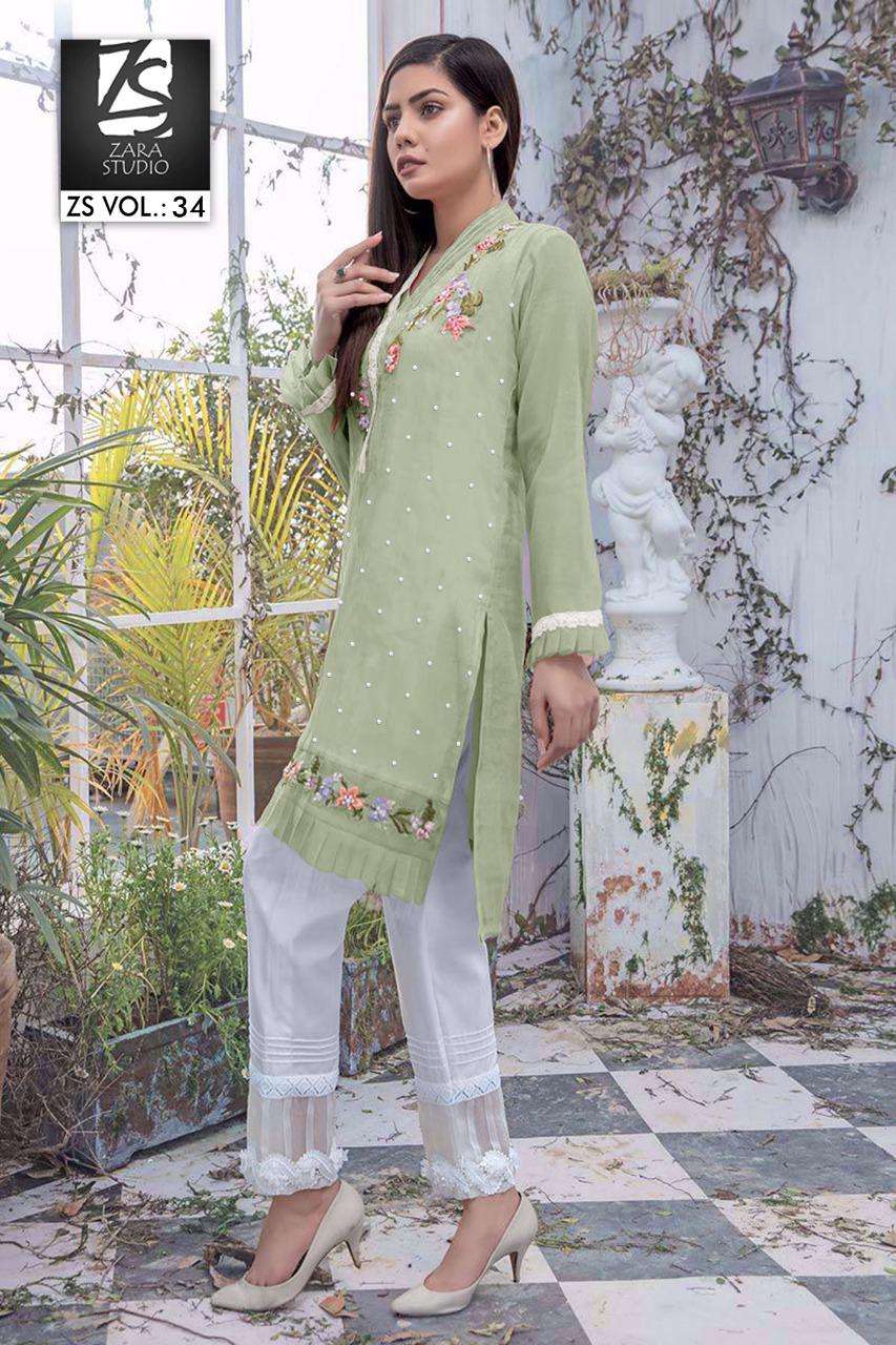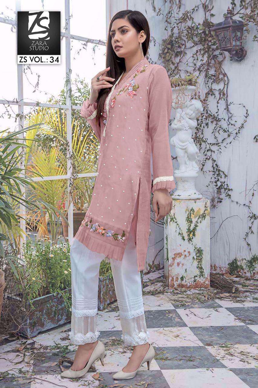 Zara Studio Zs Vol 34 Georgette Kurti With Cotton Pant