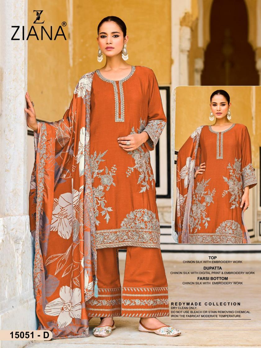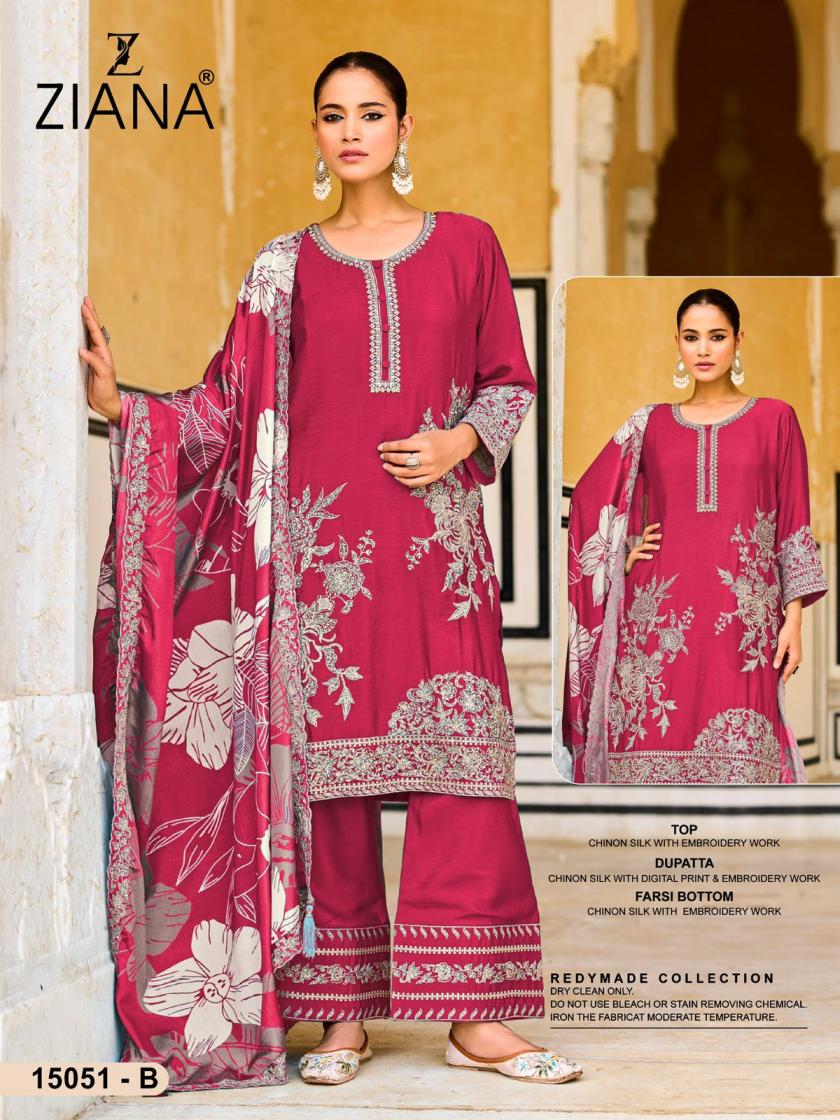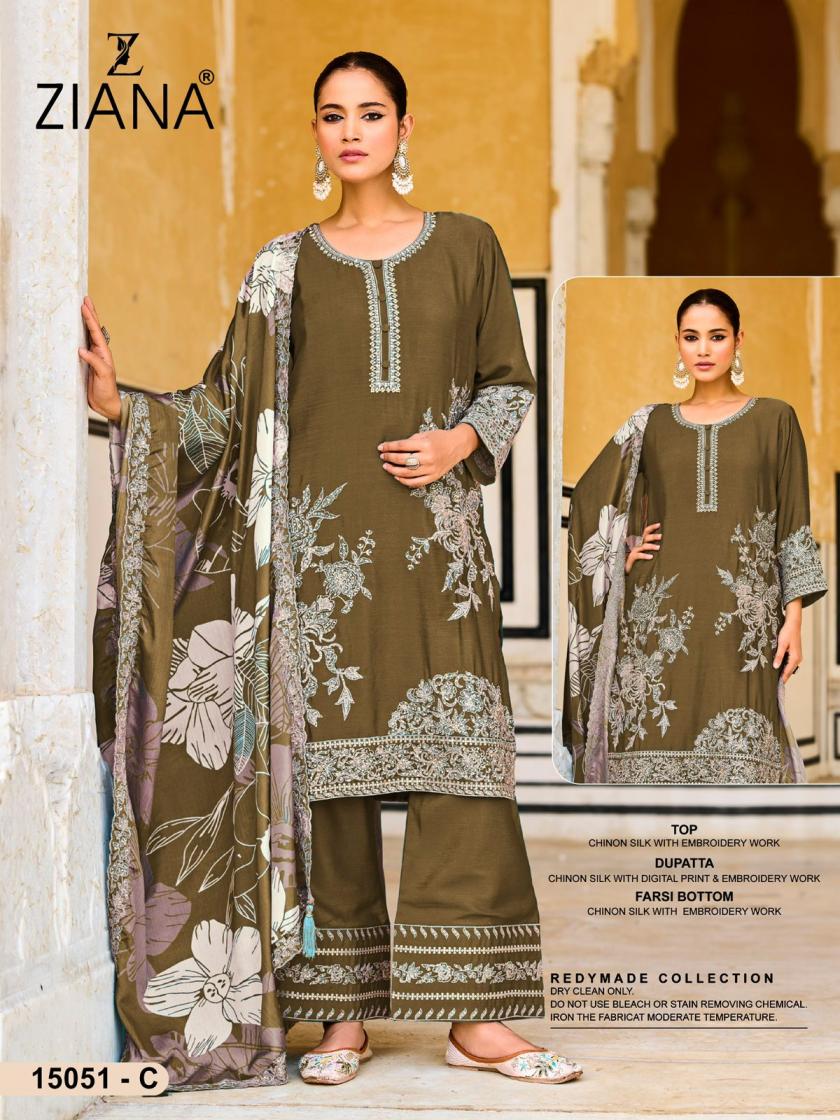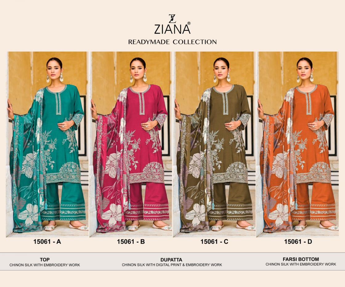 ziana 15061 attractive look chinon silk fully stitch combo plazzo kurti with dupatta