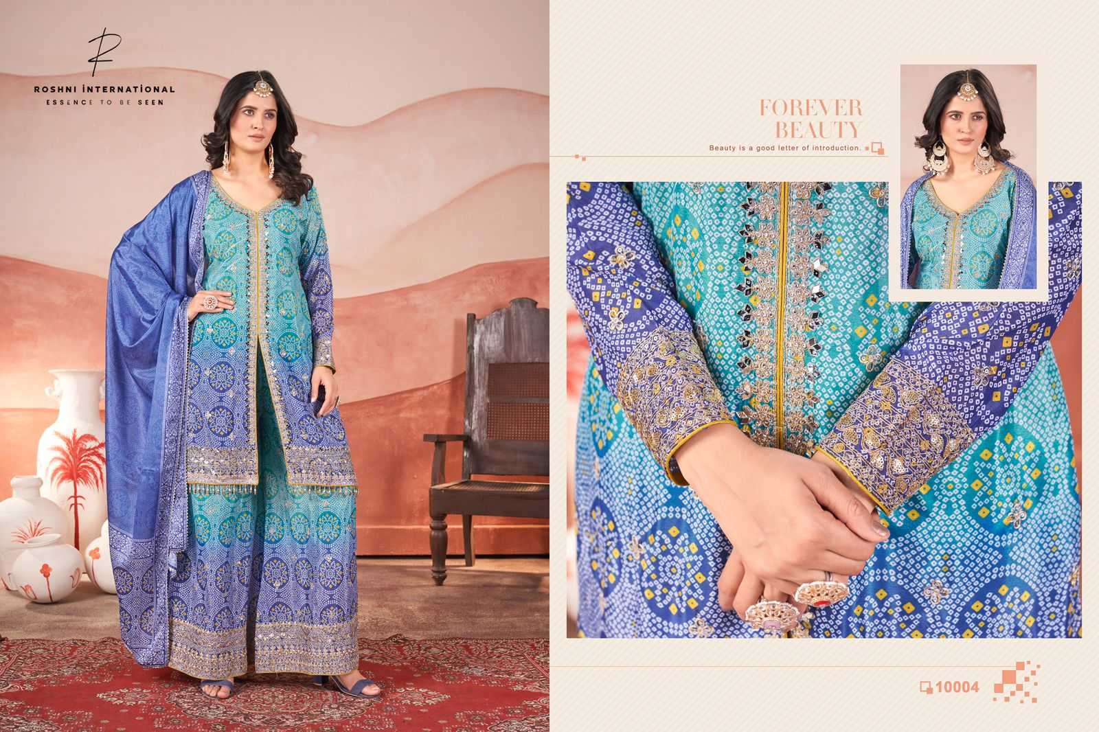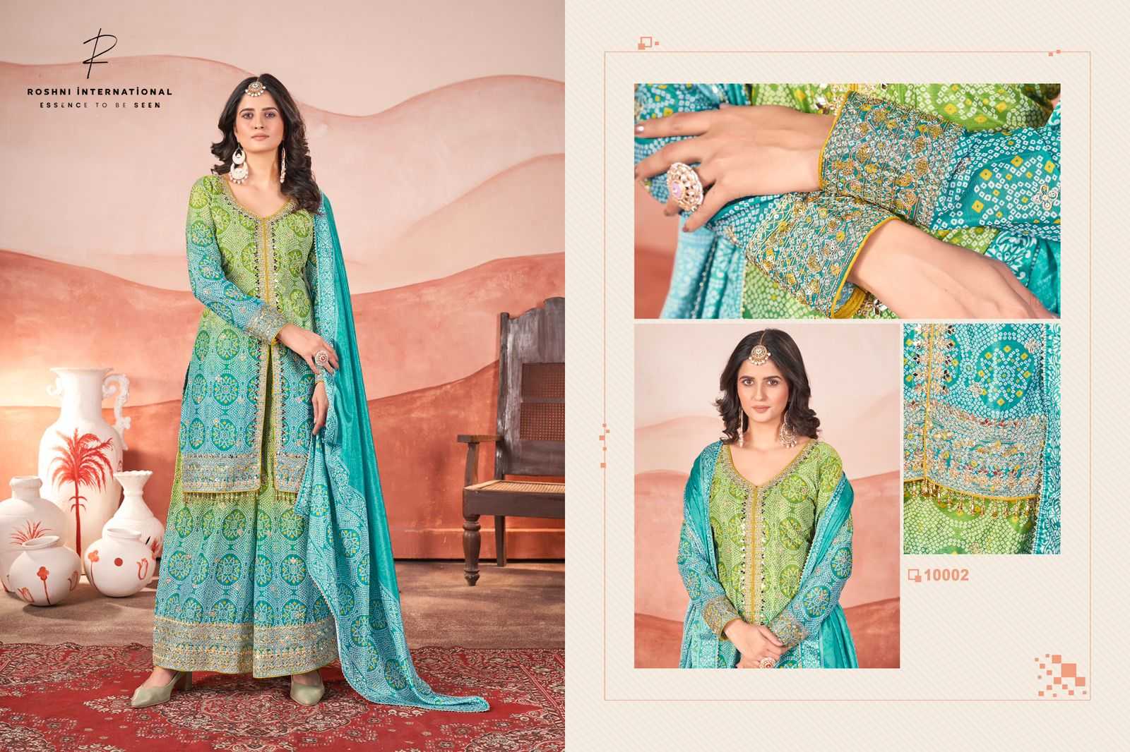 zubeda kasturi embroidery chinon silk print readymade plazzo style 3pcs dress