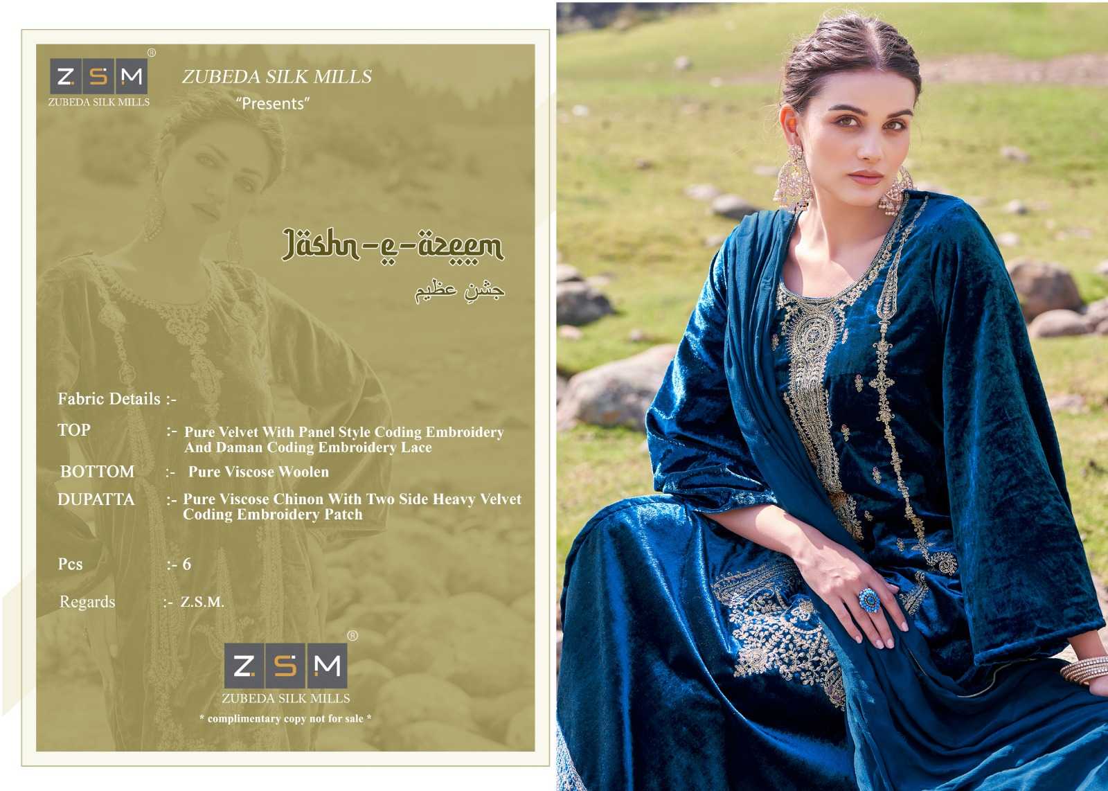 zubeda silk mills jashn e azeem winter wear velvet suit material