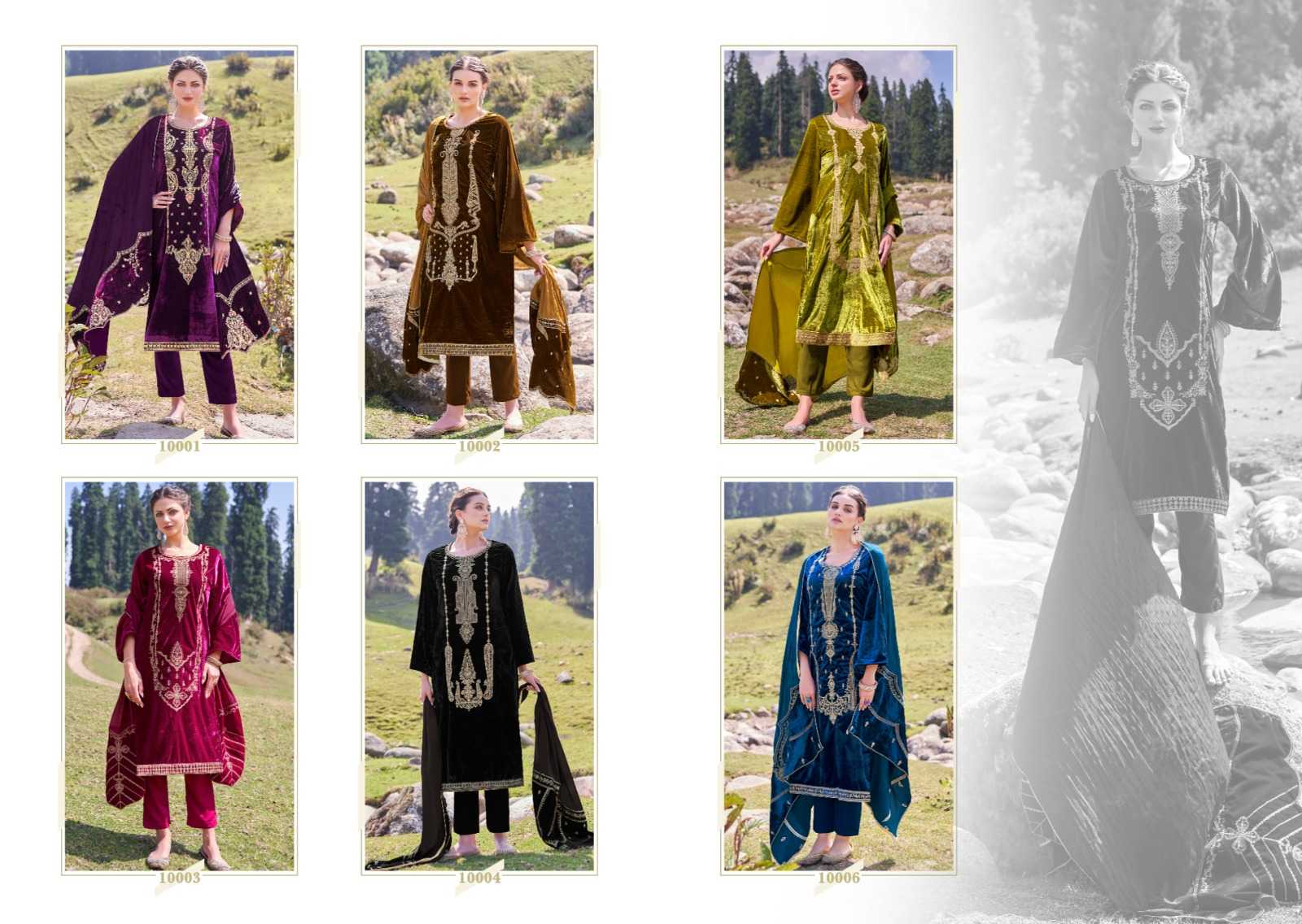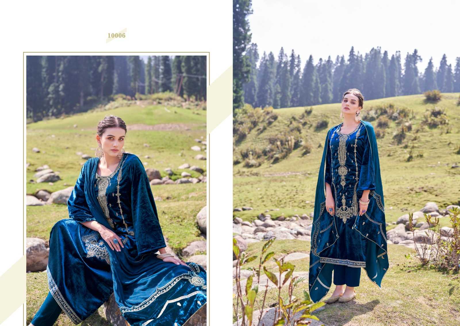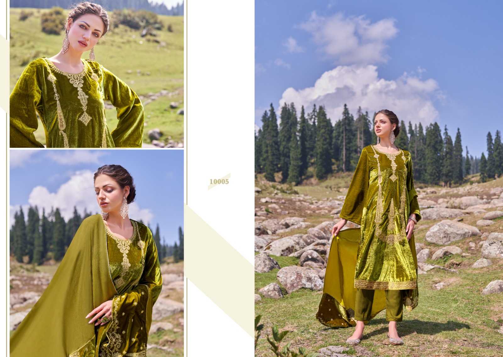 VELVET CONTINUE.... ...Z.S.M. DesigNer StuDio... ‘presents’ 👗:- viscose velvet with heavy panel style coding embroidery and the daman are also decorated with heavy fancy coding embroidery lace 👖:- Pure viscose woolen 🇻🇳:- Pure viscose Chinon with two side pure velvet coding embroidery patchwork 🔺Pcs: 6 Rate:- 1951/- At Z.S.M , Quality Fabrics with exquisite designs at Best Price is our 'Cherished Legacy |