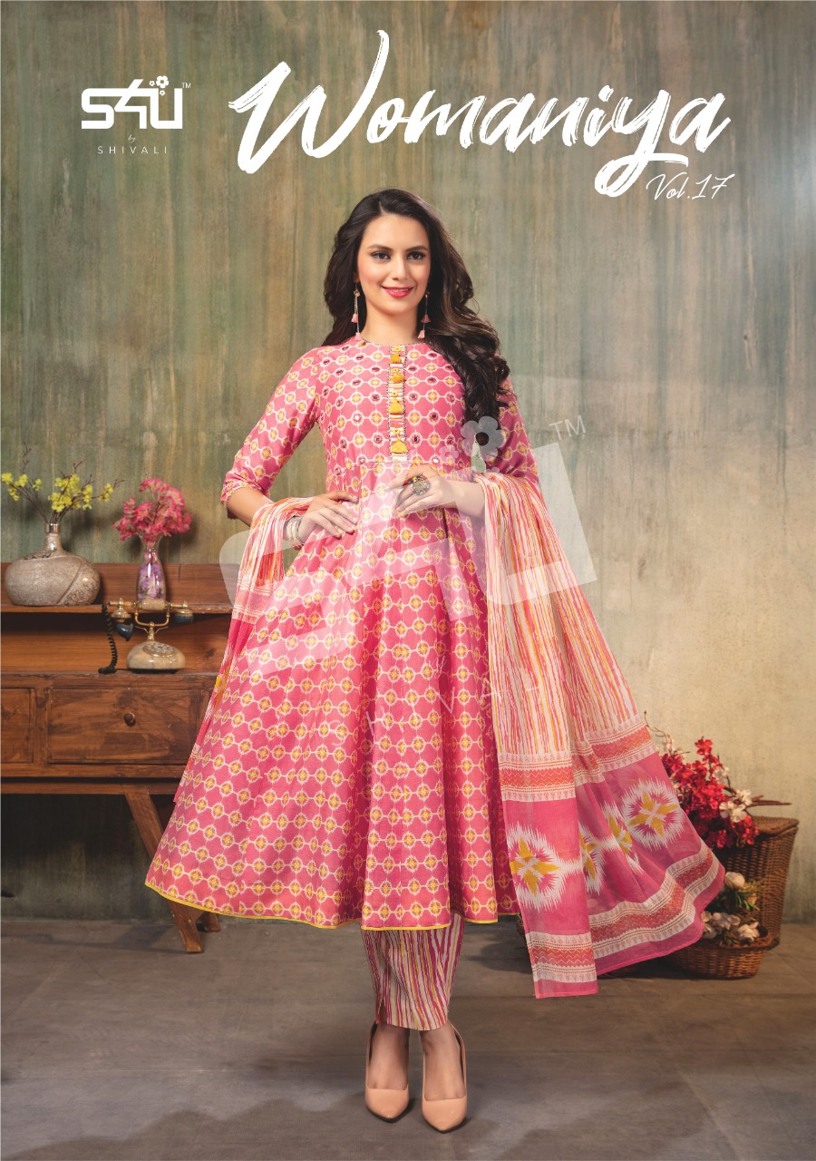 s4u 492 design party wear combo set of anarkali kurti with bottom and dupatta