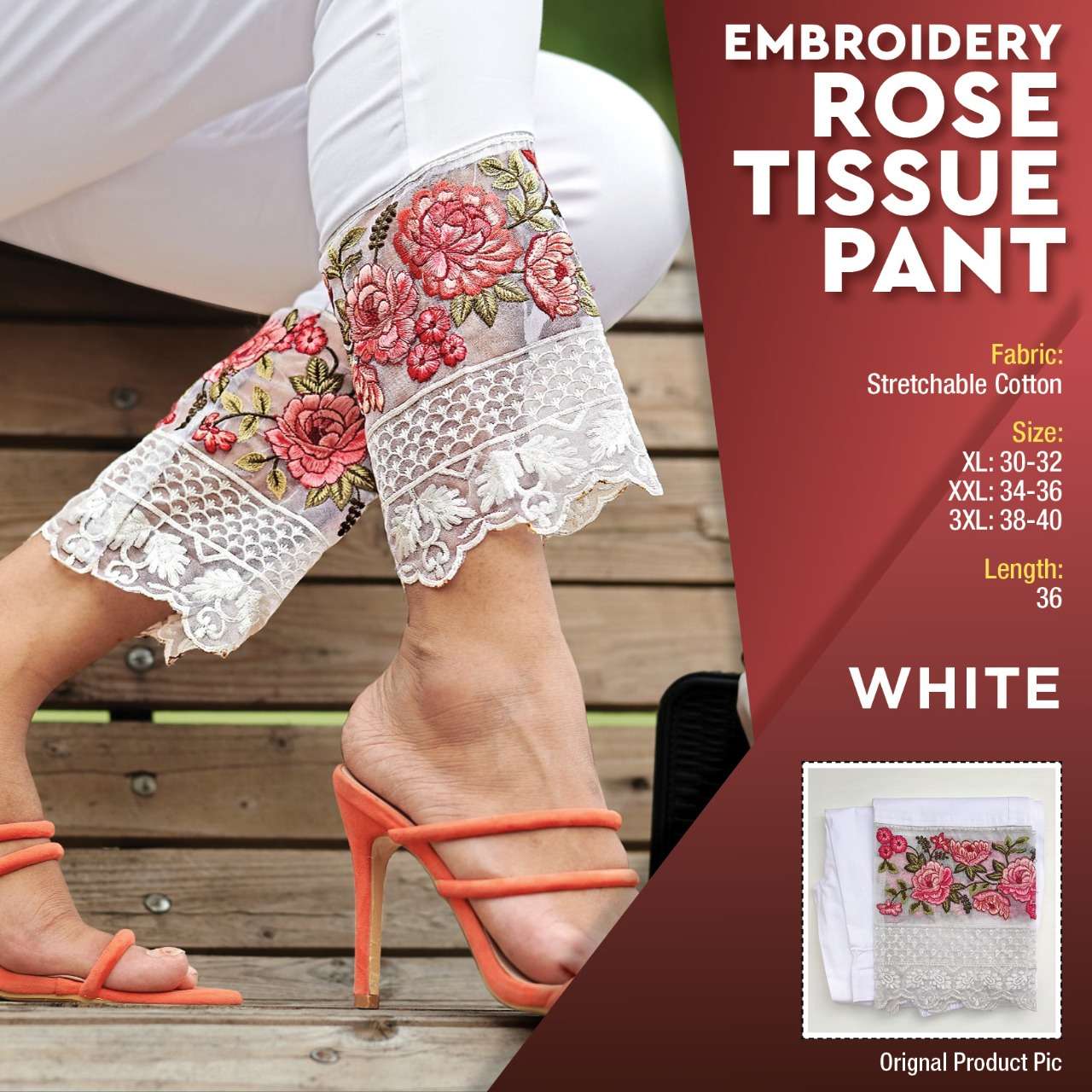 embroidery rose tissue pant cotton stretchable pants design