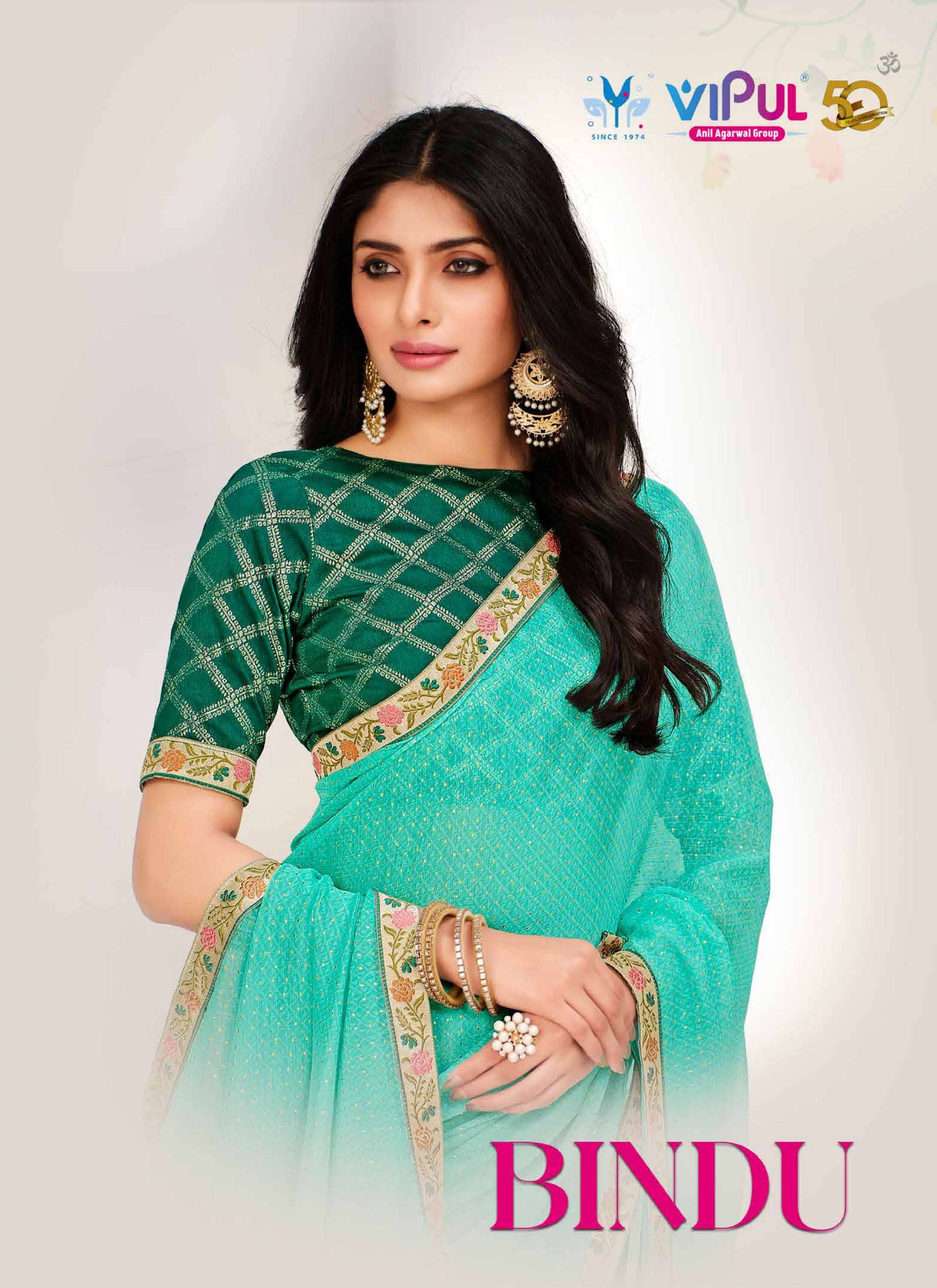 vipul fashion aalisha party wear chiffon beautiful sarees stone work