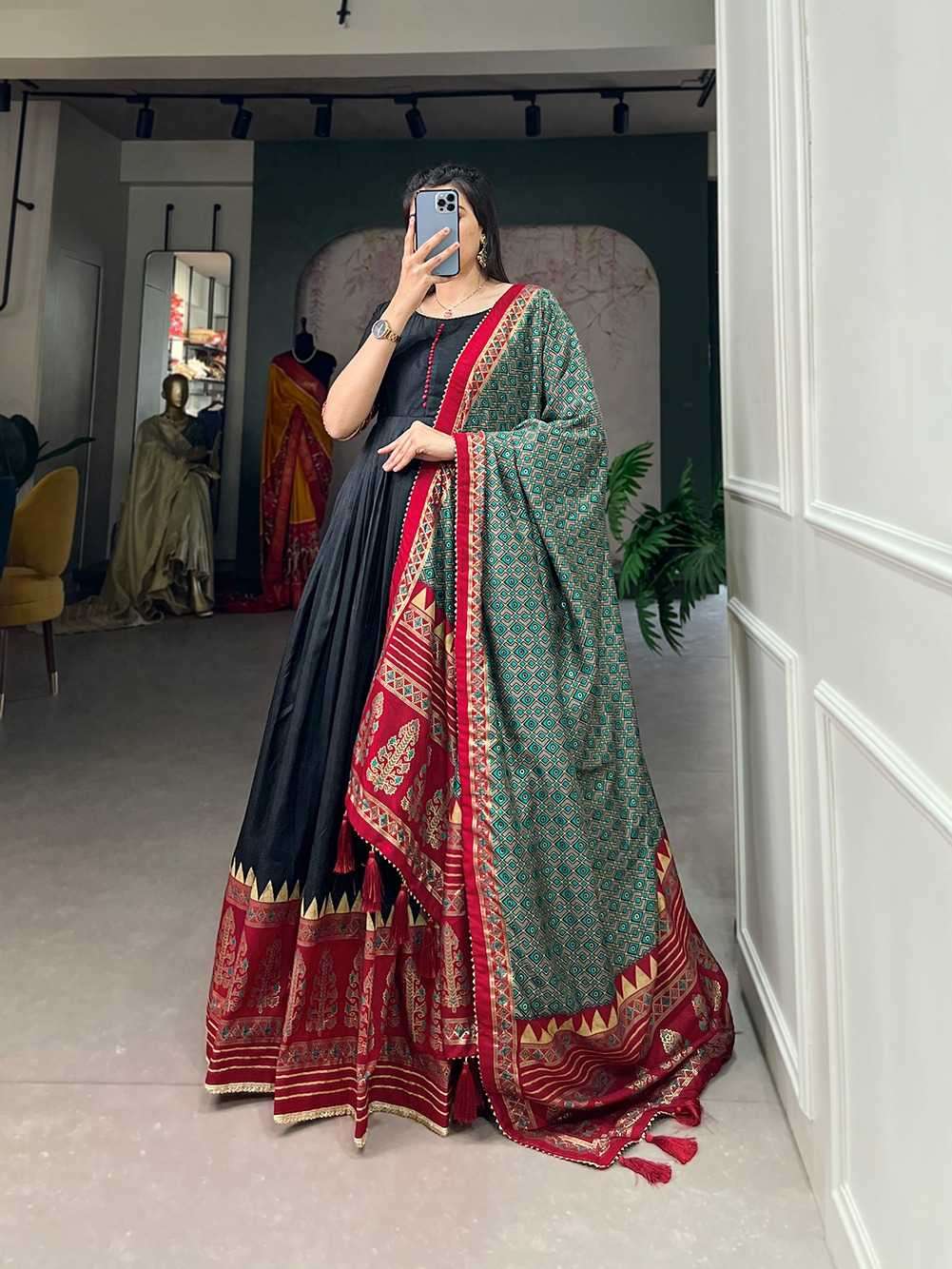 ka 1137 faux blooming readymade attractive gown with dupatta