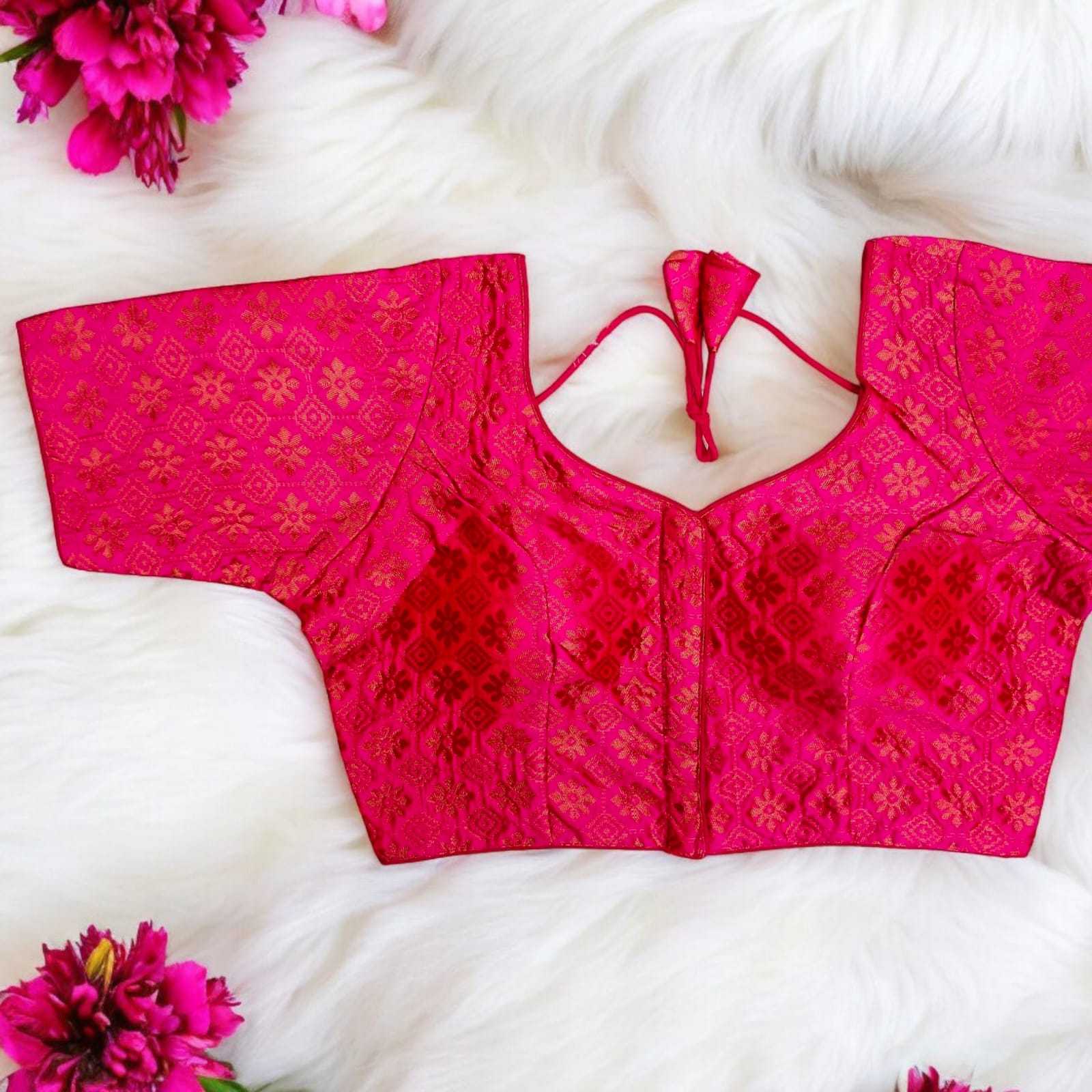 pr tulsi copper stylish look round neck jari banarasi jacquard readymade blouse