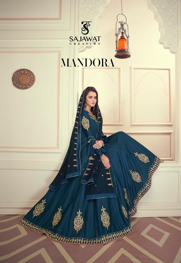 Sajawat Creation Mandora Heavy Maslin Silk Party And Wedding Wear Long Gown Style Salwar Suits