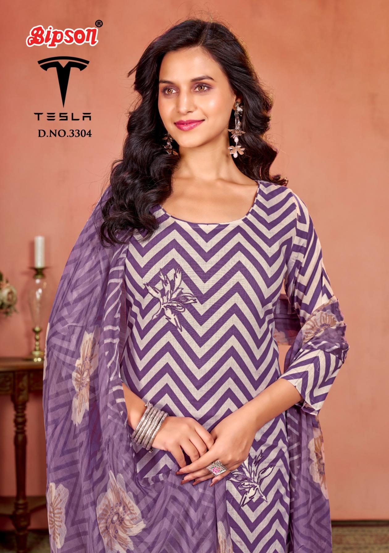 tesla 3305 by bipson print unstitched 3pcs casual dress set