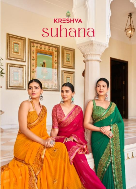 kreshva magazine 4453-4458 georgette fashionable saree for womens
