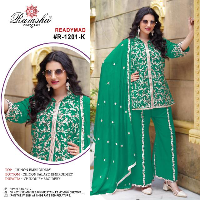 ziana 15061 attractive look chinon silk fully stitch combo plazzo kurti with dupatta