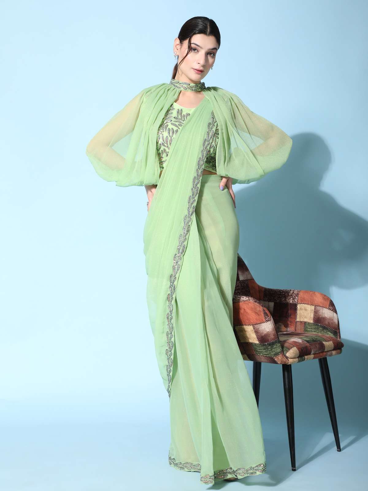 pr 10522 ready to wear fancy work saree with blouse and designer shrug