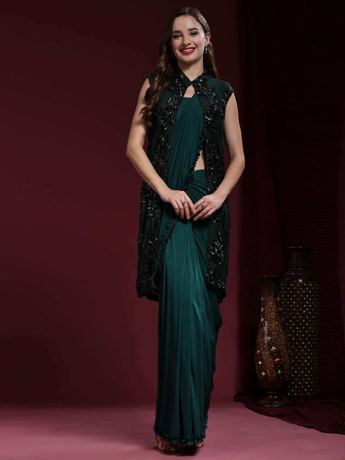 pr 10519 ready to wear fancy saree and blouse with sequin embroidery shrug