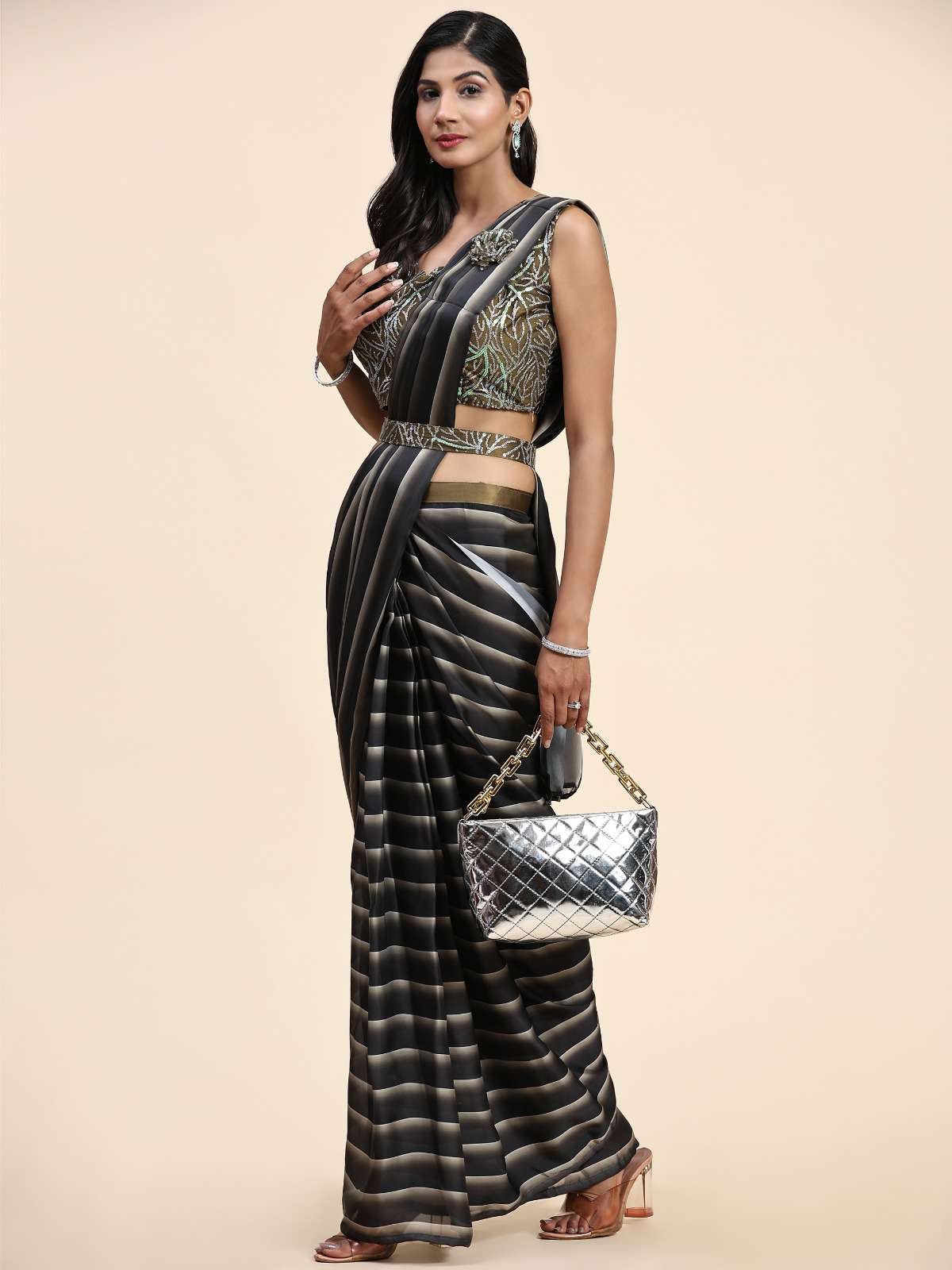 pr 1015908 ready to wear saree with belt stitched saree exports