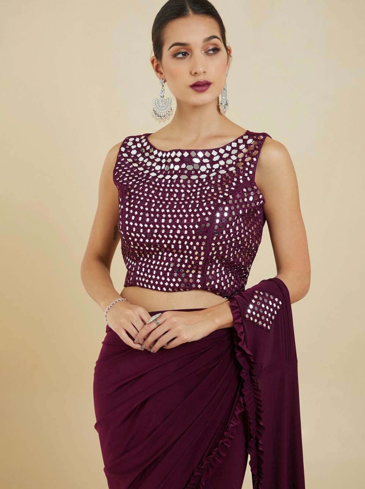 pr 1015696 ready to wear georgette saree with mirror work blouse