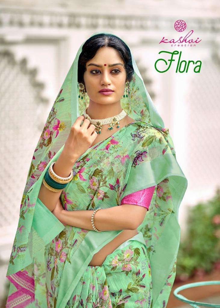 kashvi creation ashwem vol 2 comfy wear dull moss with satin print border sarees