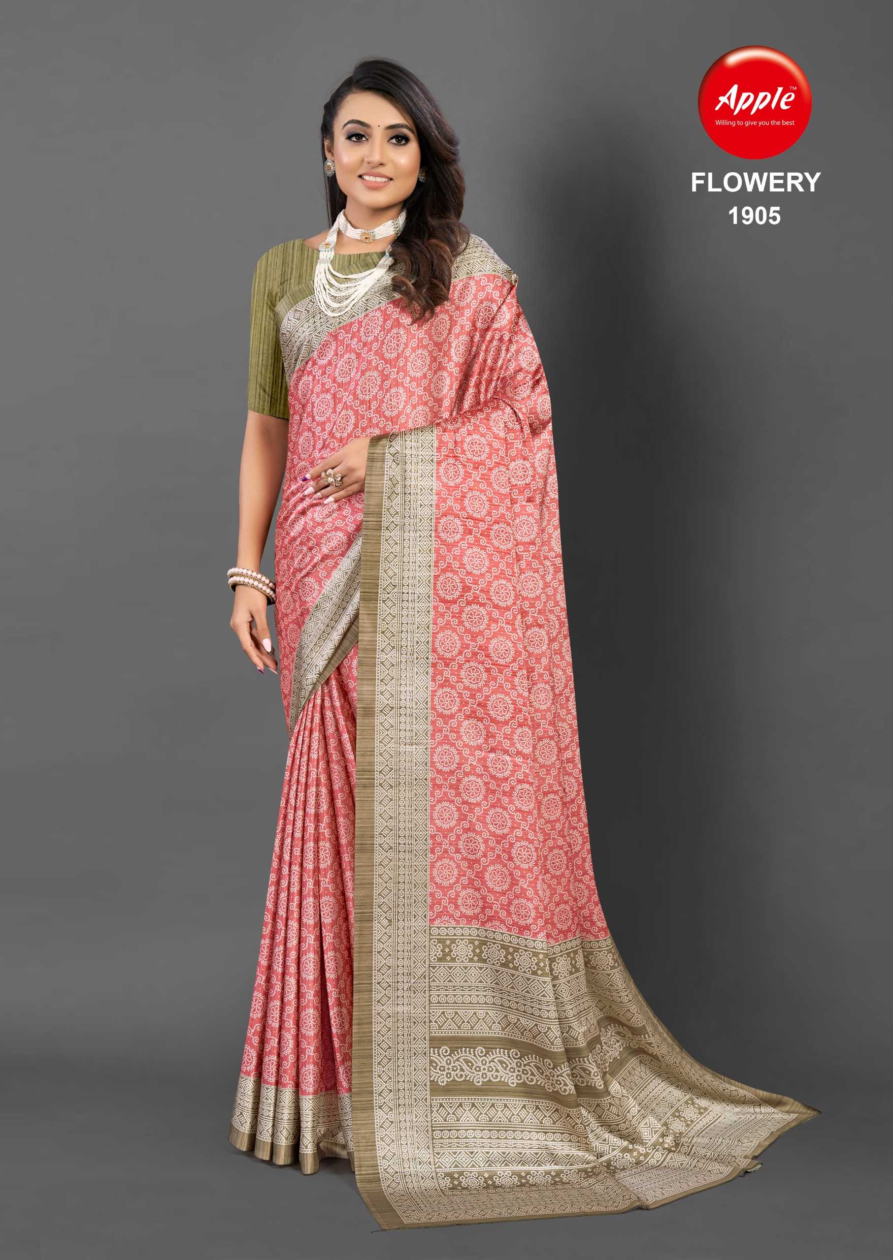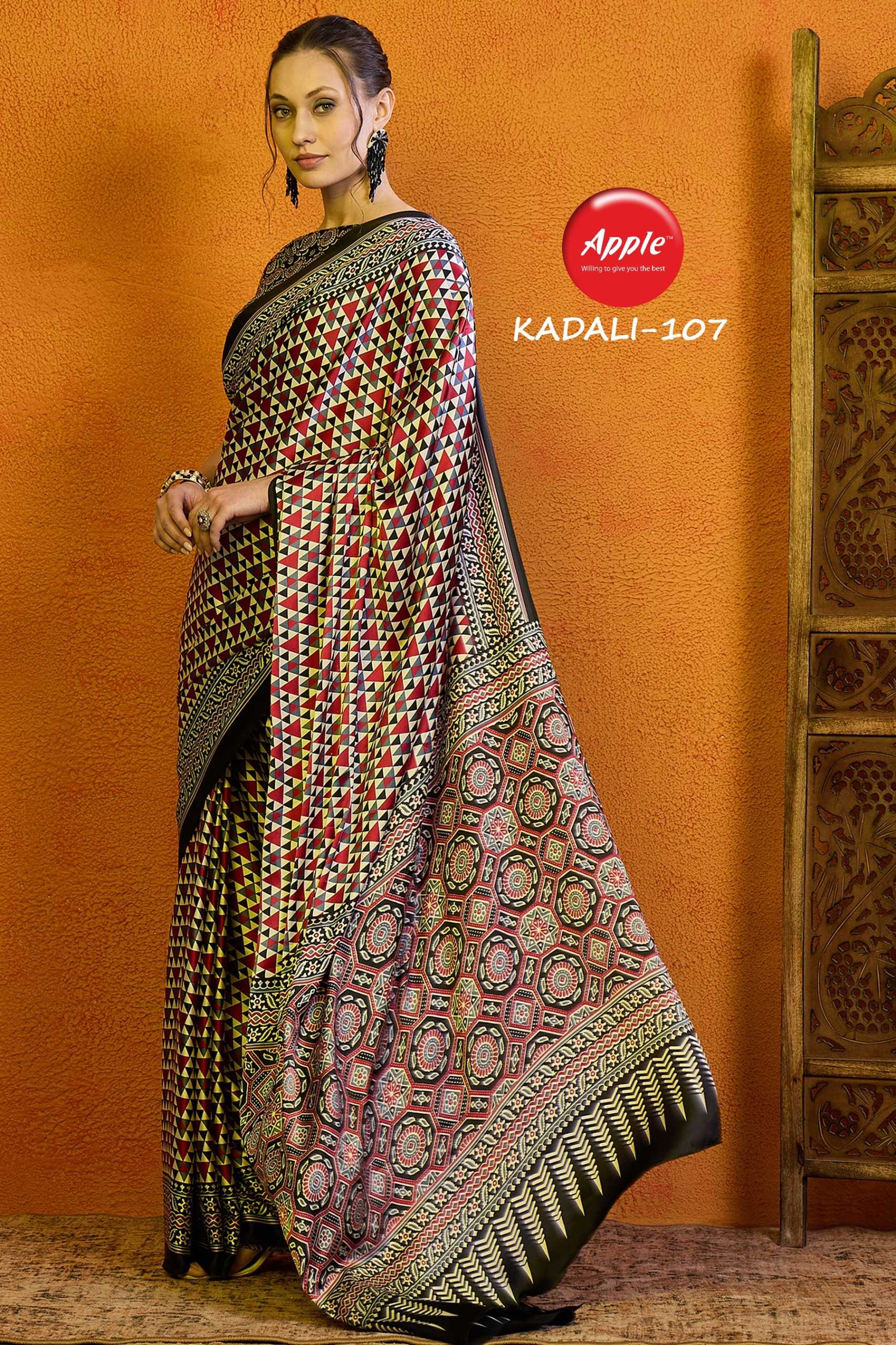 apple mohar vol 7 japan satin ajrakh fancy printed womens saree