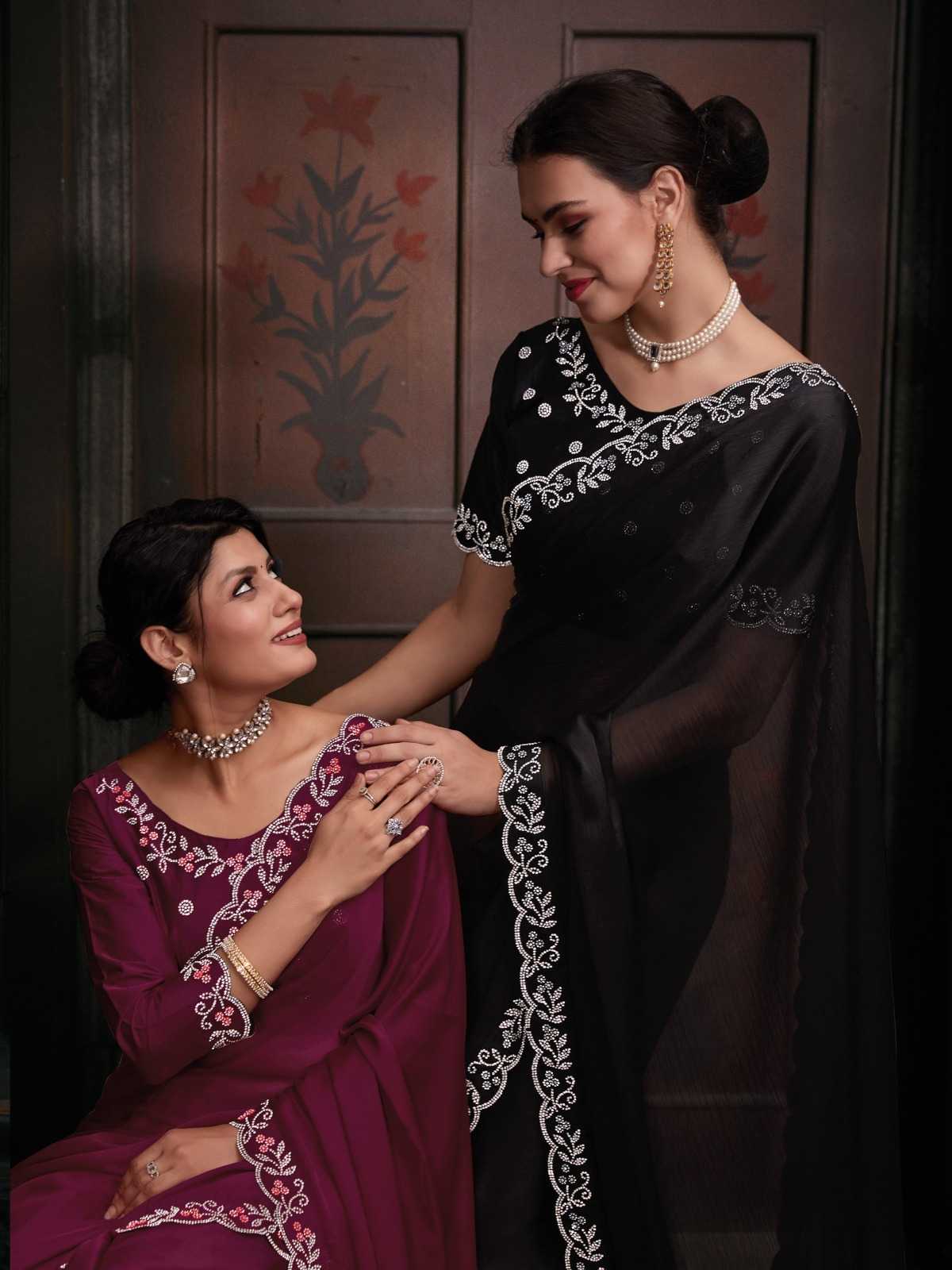 elegance vol 1 by kashvi creation latest design satin chiffon saree traders