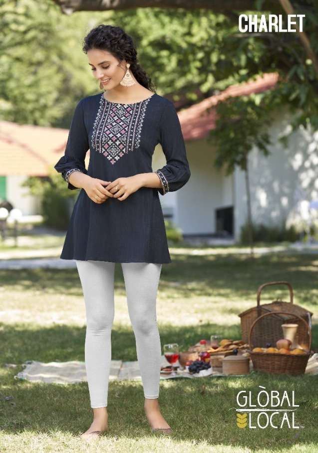 blue hills show off vol 3 rayon printed short kurti tunic collection