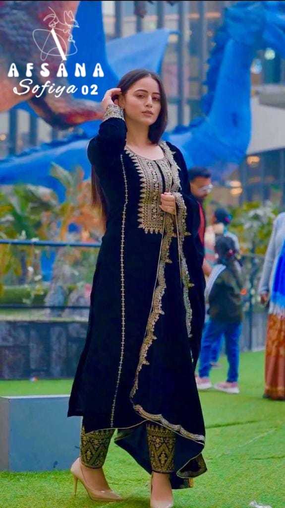 afsana sofiya vol 2 2029 pakistani velvet winter wear 3pcs readymade combo set