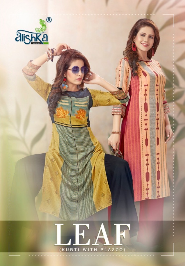 Alishka Fashion Present Leaf Rayon Stylish Kurti With Plazzo Wholesale Rate
