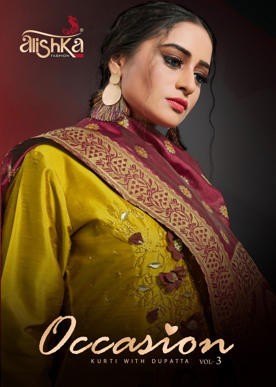 Alishka Fashion Launch Occasion Vol 3 Silk Stylish Traditional Wear Kurti With Banarasi Dupatta