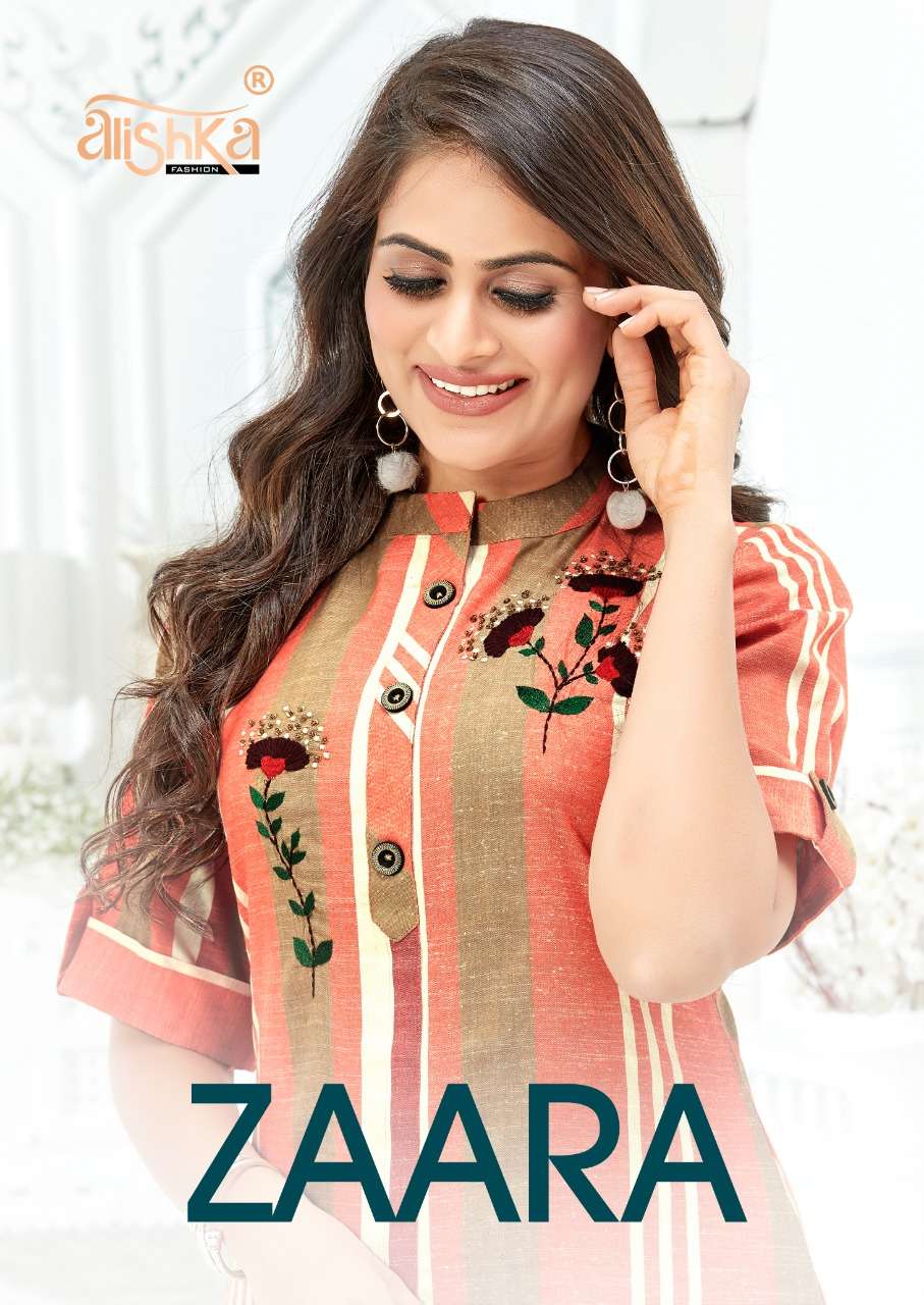zaara by alishka fashion cotton embroidery formal wear kurtis