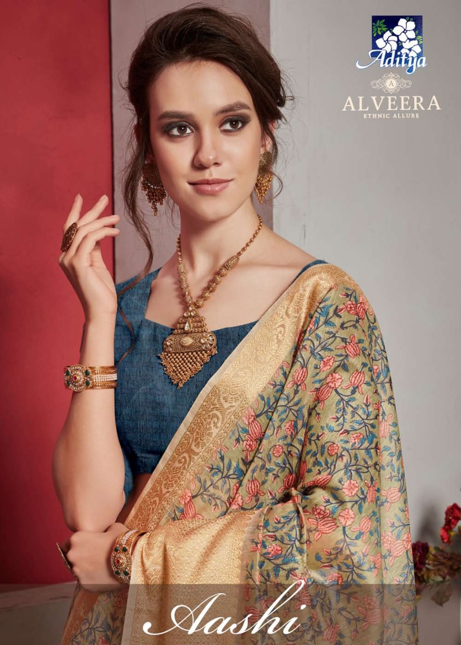 Alveera Present Aashi Jacquard Weaving Linen Saree Wholesaler