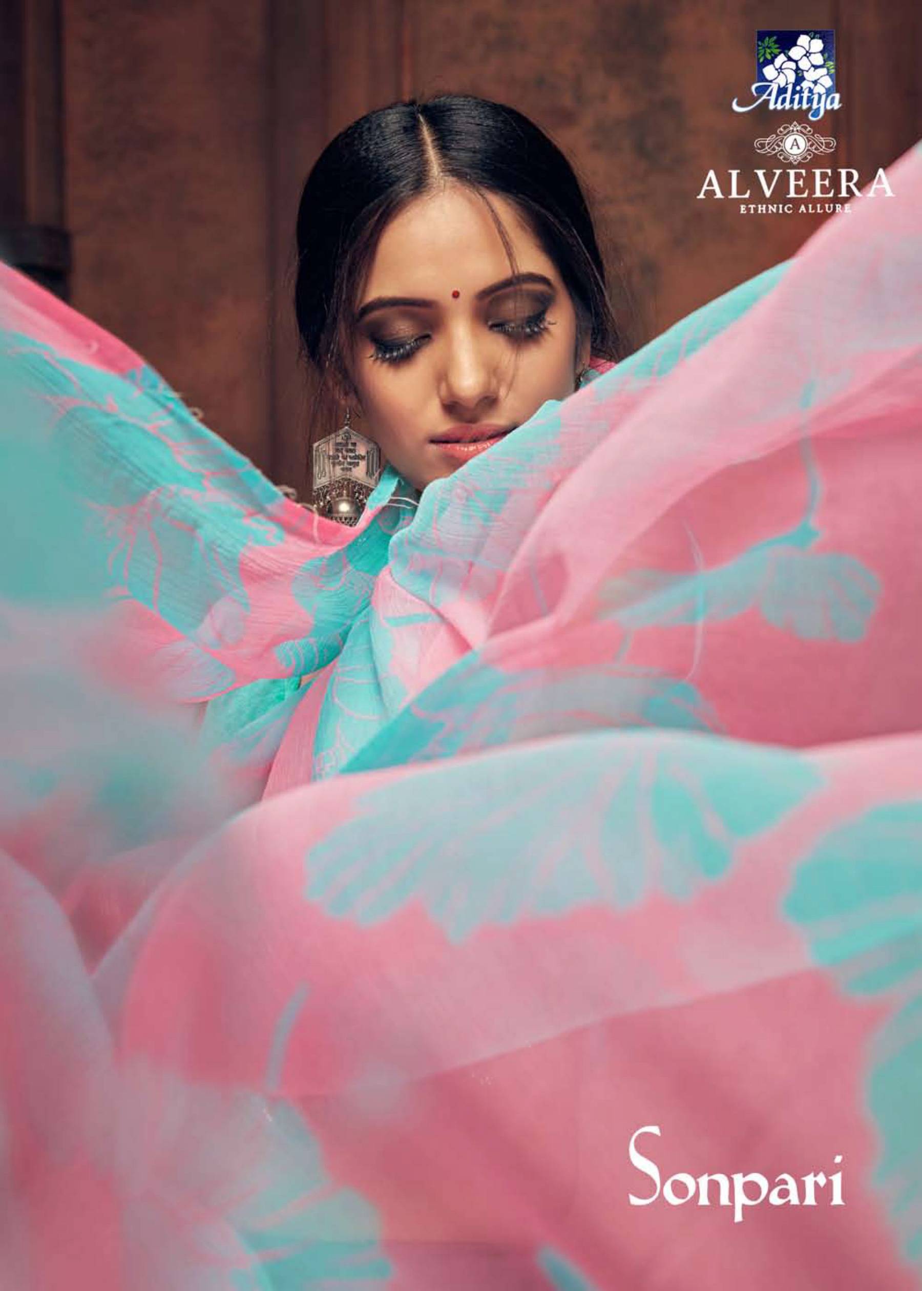 Alveera Sonpari Chiffon Printed Saree Wholesaler