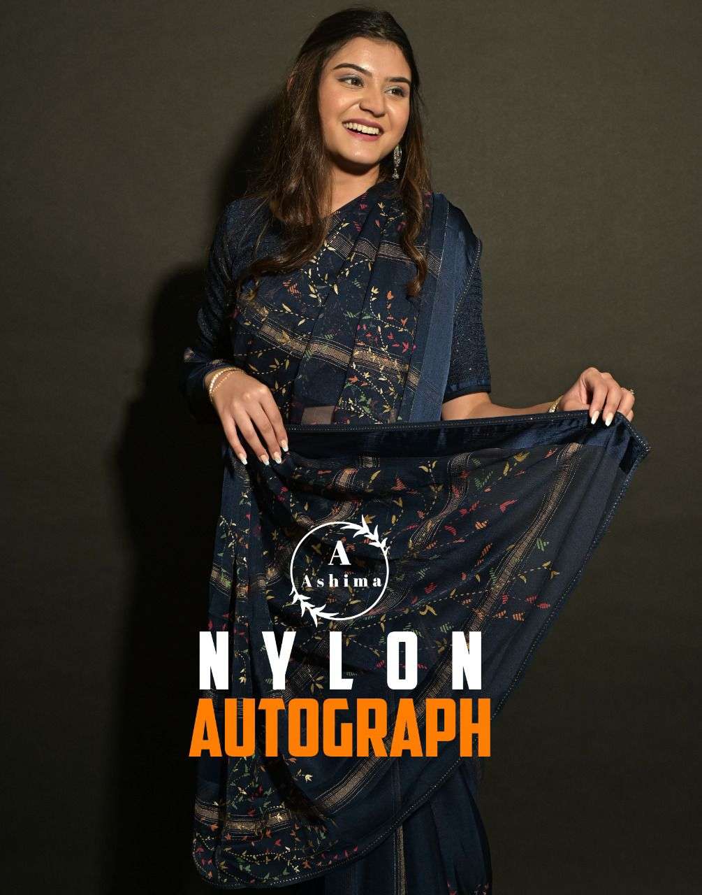 ashima nylon autograph weaving pattern with satin patta fancy sarees collection