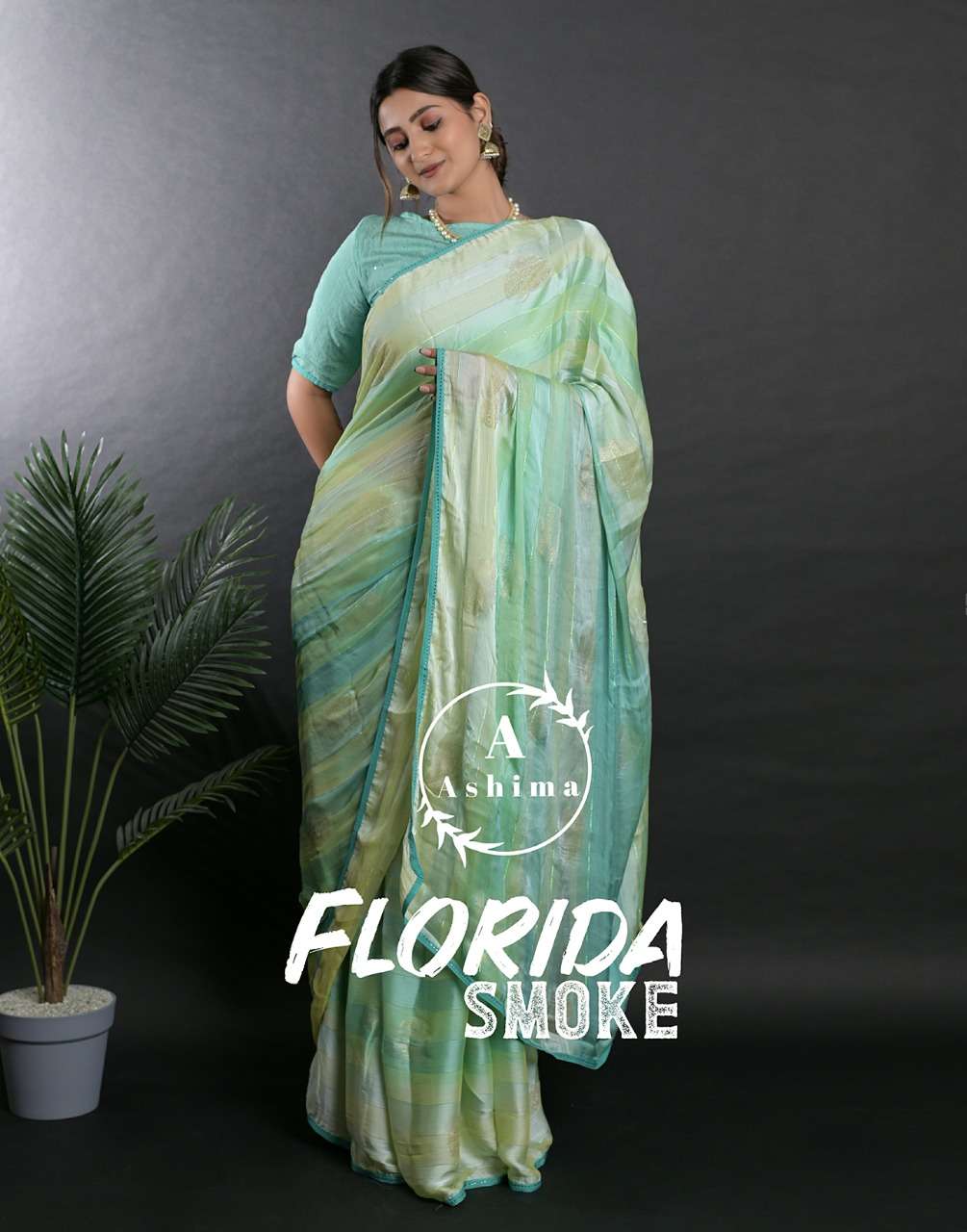 jasmine by ashima unstitched moss chiffon zari printed sarees