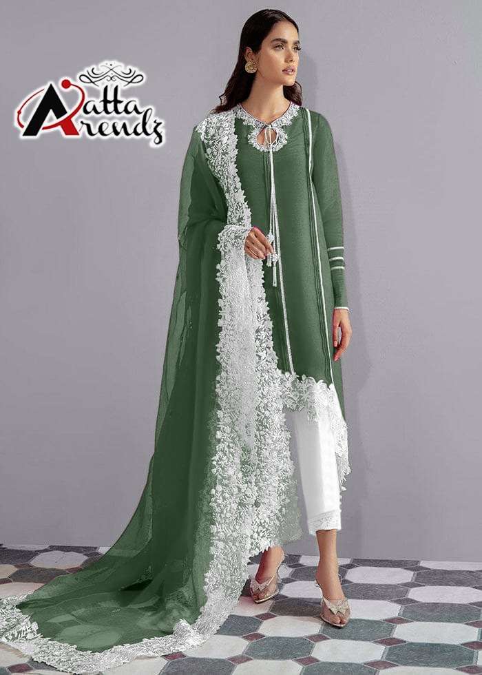 atta trendz 2732 amazing embroidery pakistani kurti with pant and organza dupatta