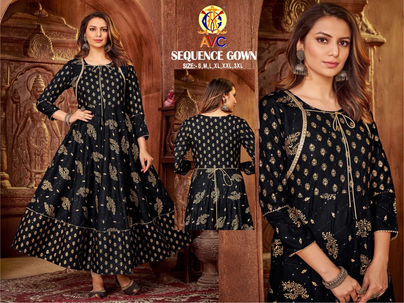 sequence deepika by avc creation readymade catalog fancy work long kurti