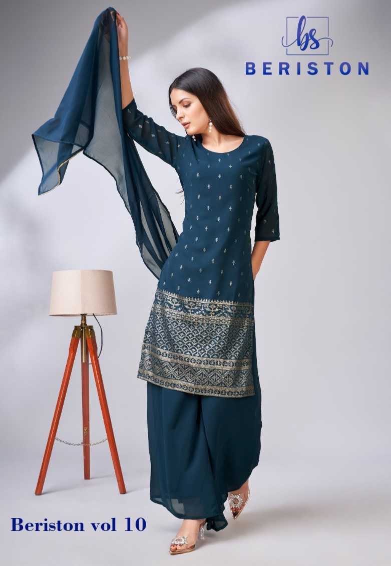 beriston vol 10 occasion wear georgette readymade sharara kurti and dupatta