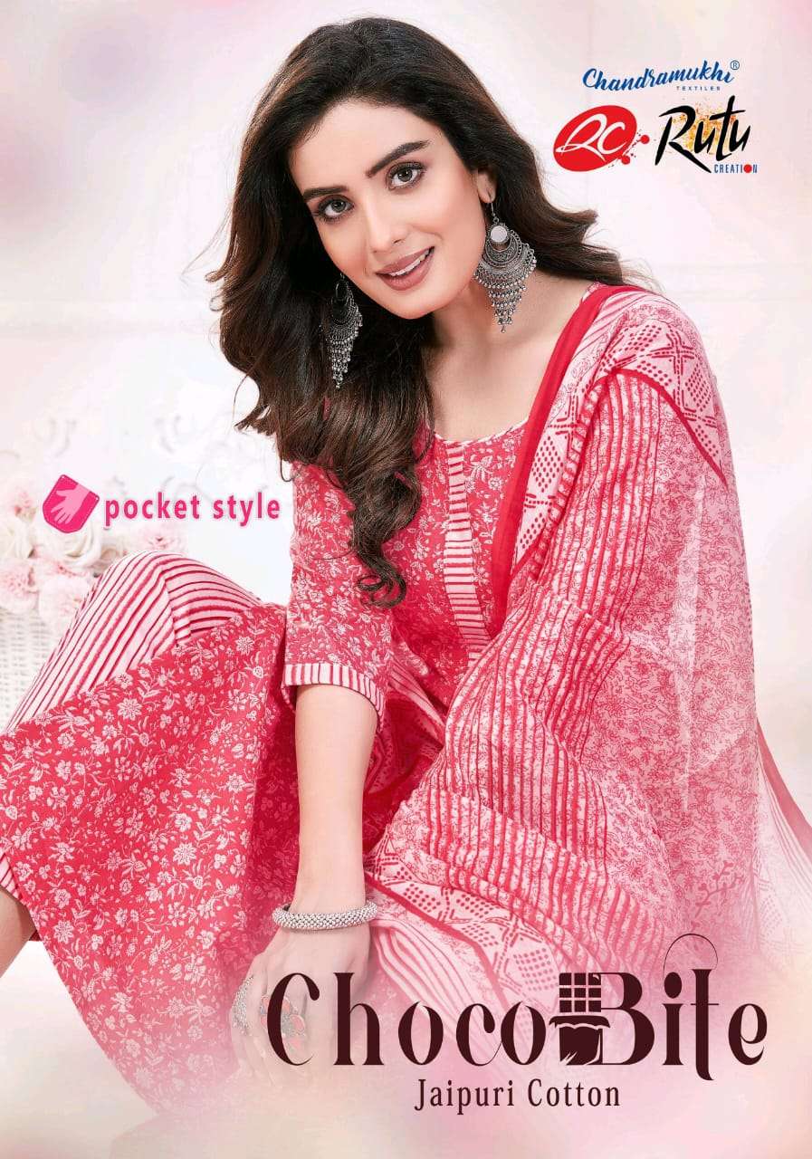 chandramukhi rutu creation present choco bite amazing jaipuri cotton 3pcs dress material