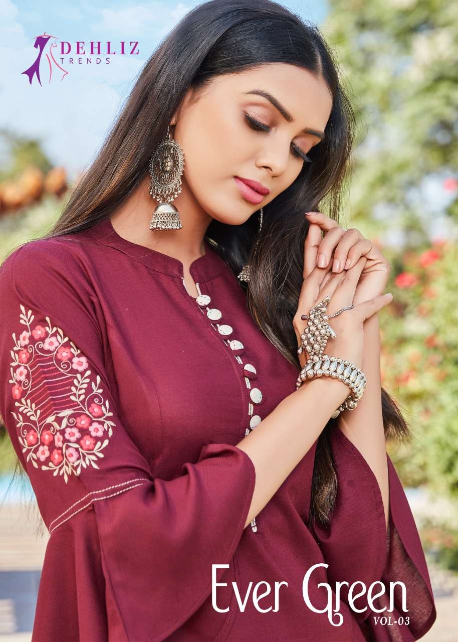 evergreen vol 3 by dehliz trendz rayon kurti with pant supplier