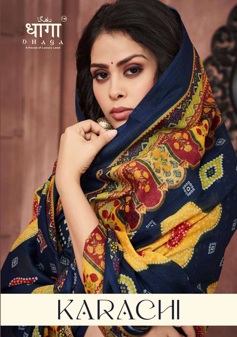 dhaga present karachi cambric cotton bandhani digital print salwar suits collection