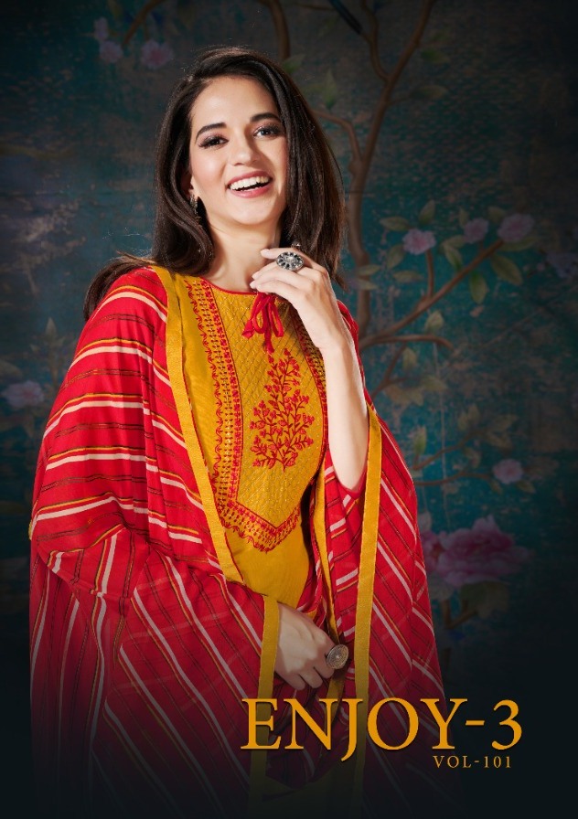 Enjoy Vol 3 By Fashion Floor Slub Cotton With Beautiful Work Casual Wear Dress Materials