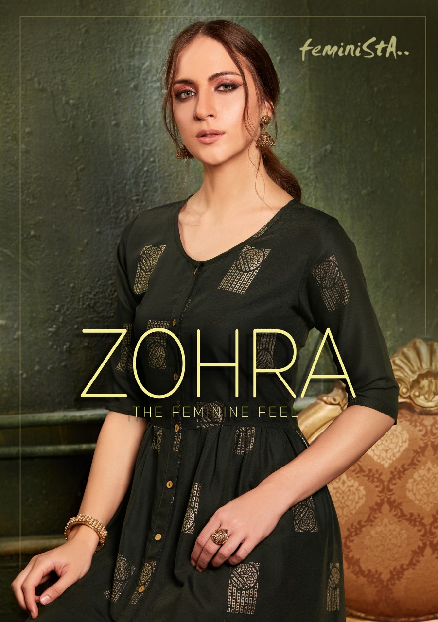 Feminista Zohra Rayon Foil Kurti With Pant Wholesaler