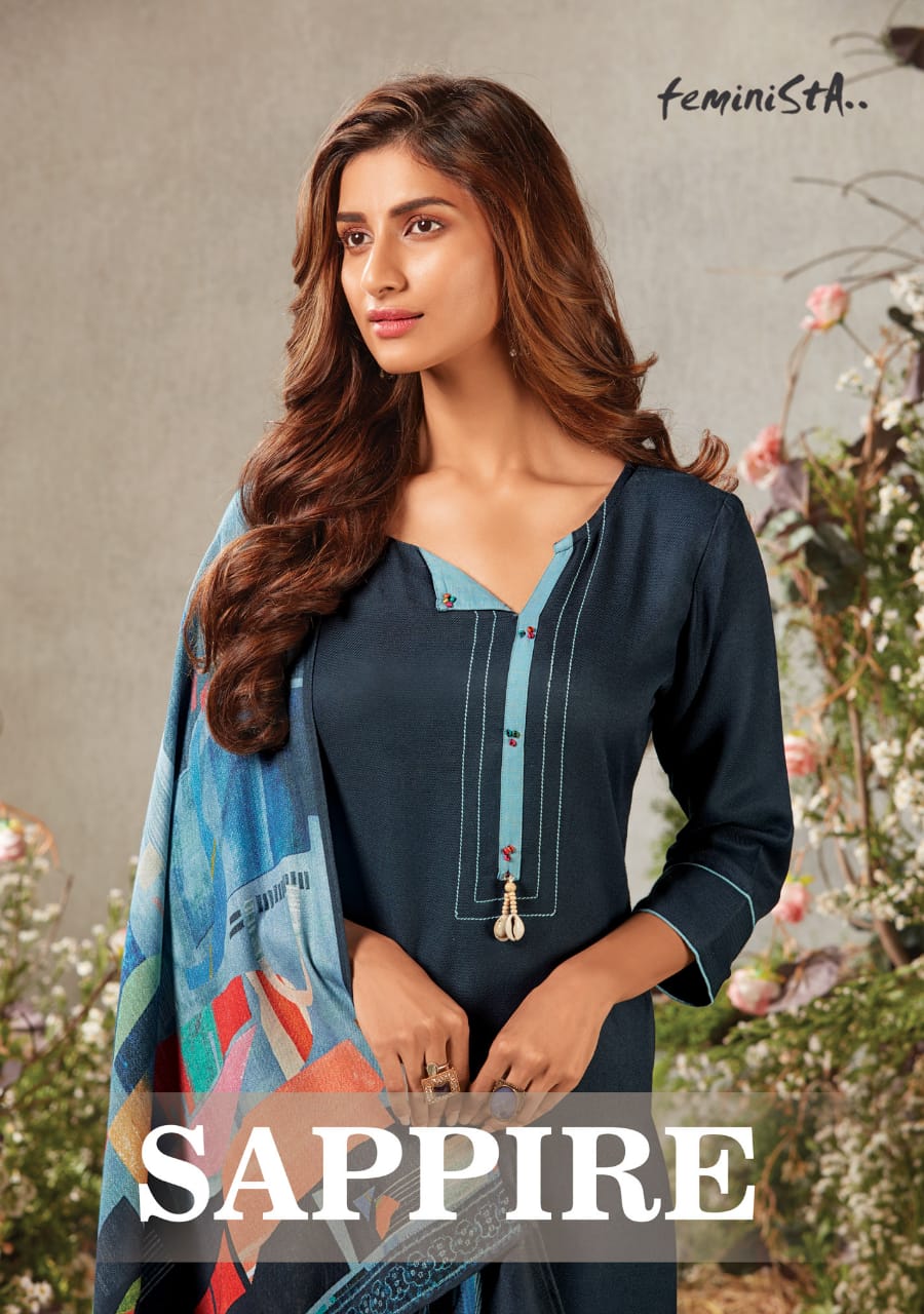 Feminista Presents Sappire Pashmina Top With Digital Print Dupatta At Wholesale Rate