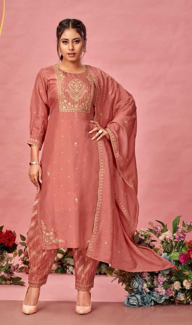 four roses 8008, 8010, 8011 embroidery roman silk readymade combo co-ord set
