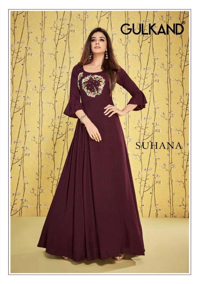Gulkand Designer Suhana Rayon Long Gown Styke Kurti Festival Collection