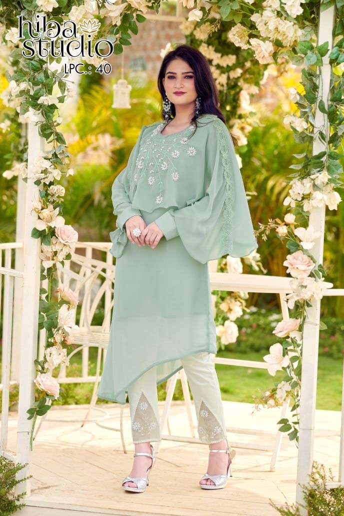hiba studio lpc 34 georgette kurti with cotton satin pant collection