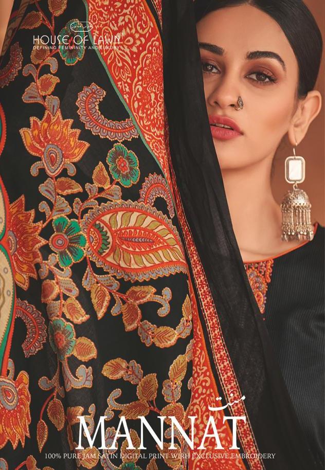 House Of Lawn Mannat Jam Satin Digital Print Casual Wear Salwar Suit Wholesaler