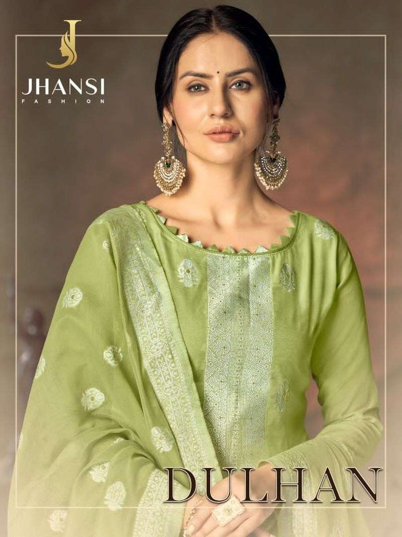 jhansi fashion present dulhan fancy white thread jacquard work salwar kameez materials