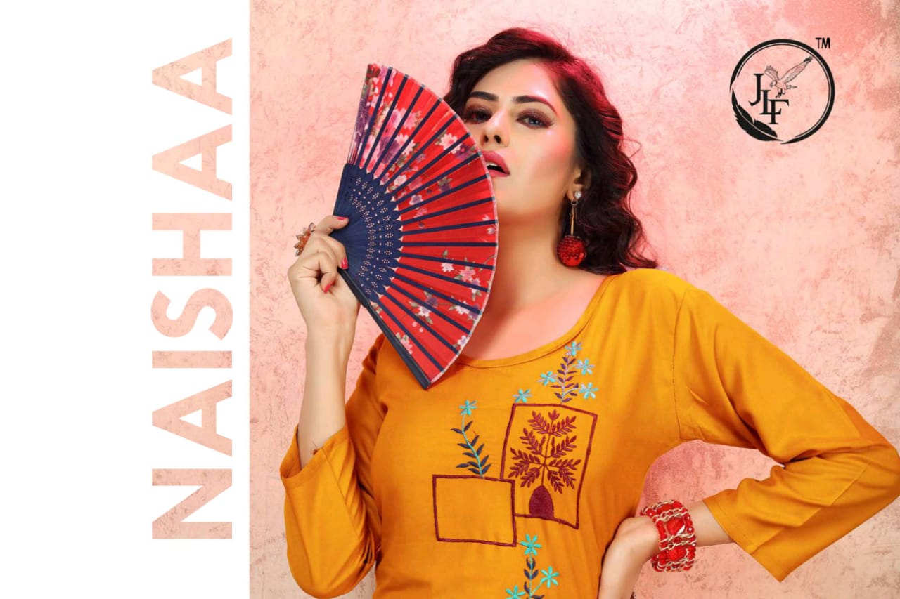 JLF SUPEER STAR VOL.1 RAYON Mirror&Sequence Embroidered WORK PRINTED KURTI CATALOG WHOLESALER BEST RATE