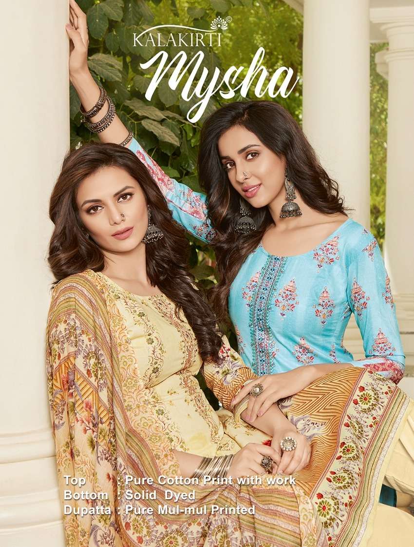 kalakirti present mysha cotton print with work fancy salwaar kameez