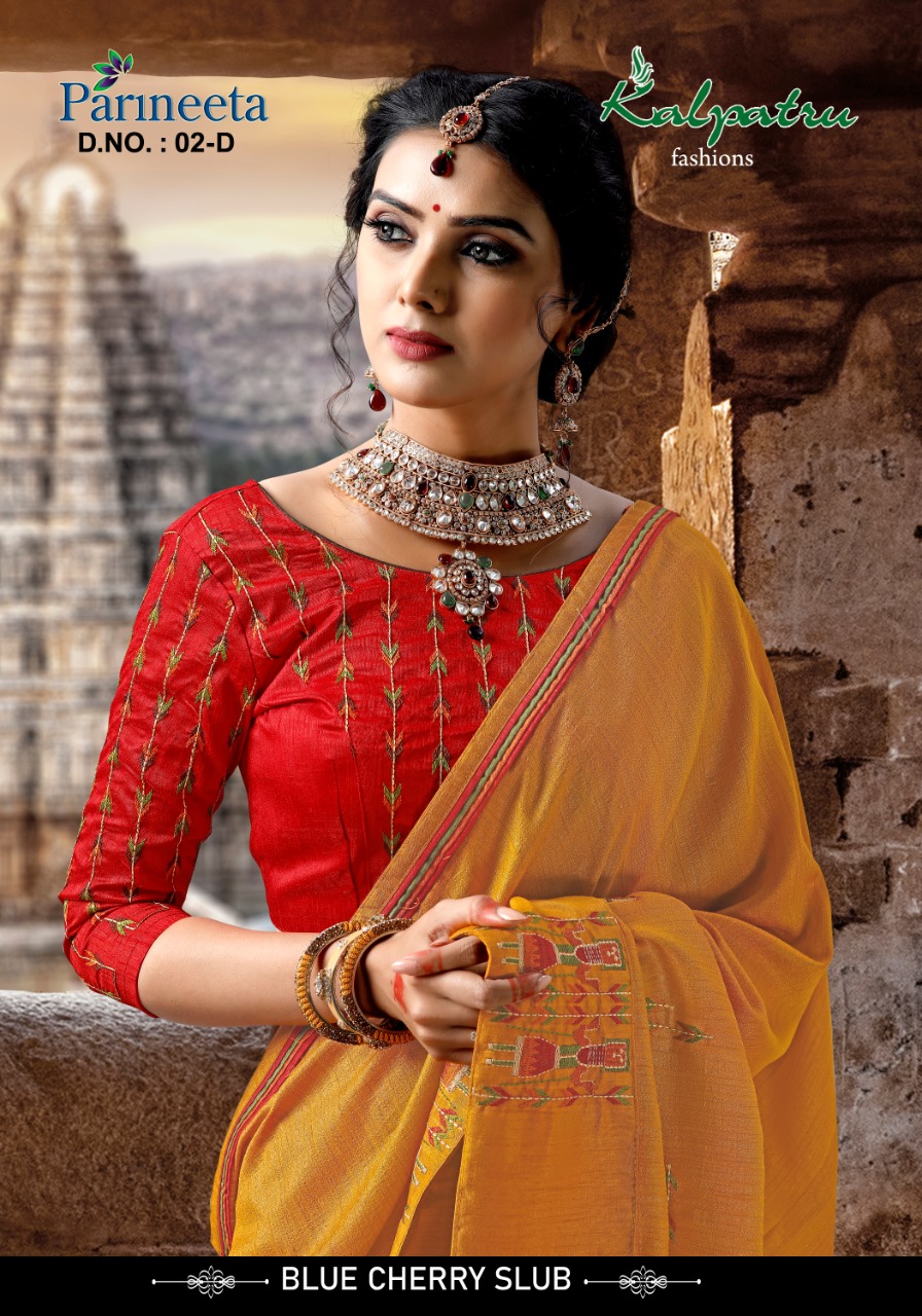 Kalpatru Fashion Pareenita Blue Cherry Slub Heavy Look Designer Saree Wholesale Price